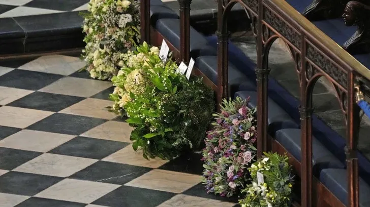 Van Meghan was er een krans en een persoonlijk bericht, ze had gevraagd in het bloemwerk Acanthus, de nationale bloem van Griekenland te verwerken en kruisdistel, 'sea holly' in het Engels. Een verwijzing naar Philips liefde voor de marine en voor Schotland.