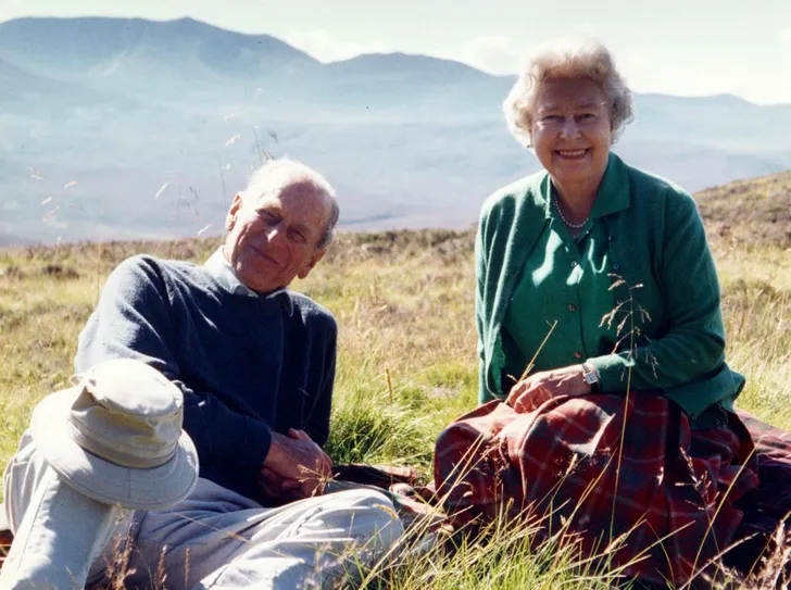 De Queen deelde gisteravond deze nooit eerder gepubliceerd foto van prins Philip en haarzelf op Balmoral. Hij is in 2003 geschoten door gravin Sophie op de top van de Coyles van Muick in Schotland. Ze wilde er iedereen mee bedanken die herinneringen aan haar man heeft gedeeld en meeleeft met de Windsors.