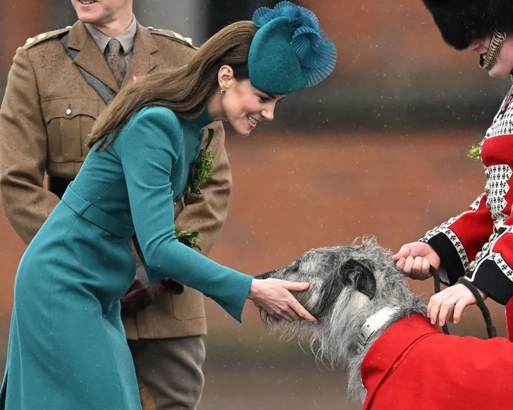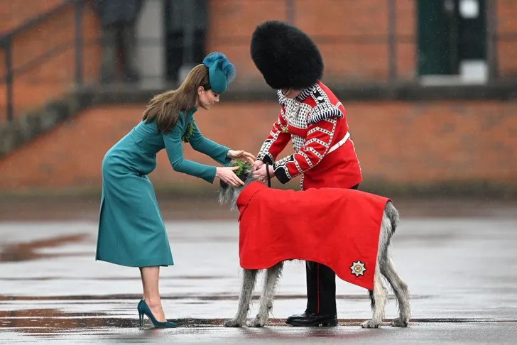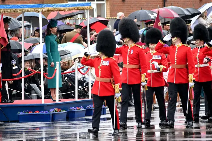 Catherine, de prinses van Wales, heeft haar eerste bezoek als (ere)kolonel van de Irish Guards in Aldershot erop zitten. Ze was vorig week al met dit regiment op oefening en lost in die functie haar man, prins William af.