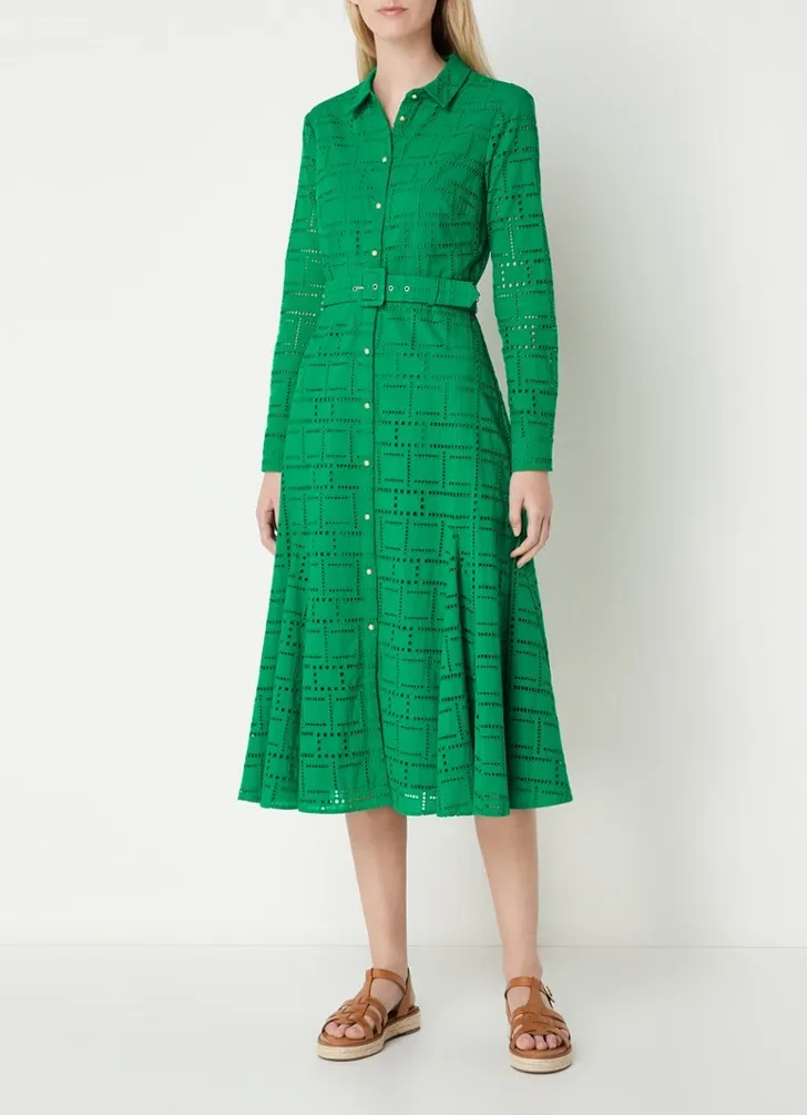 De Amalie van Phase Eight is een doorknoopjurk met broderie, € 189