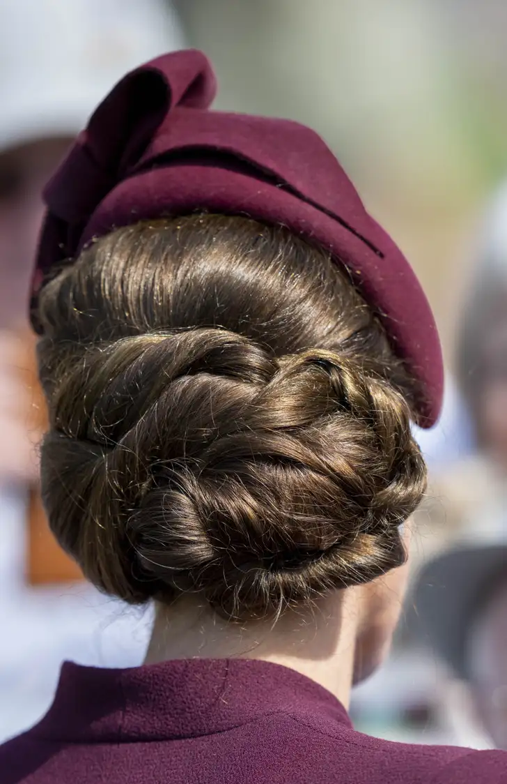 Voor het officiële deel droeg Kate een bordeaux Eponine en een nieuwe hoed van Sahar Millenery; hoedenmaakster Sahar Freemantle kon het vak leren dankzij een beurs van het Queen Elizabeth Scholarship Trust. De herfstige look verraadde dat de fashion planning van Catherine ruim van te voren vastligt en geen rekening had gehouden met de hoge temperaturen.