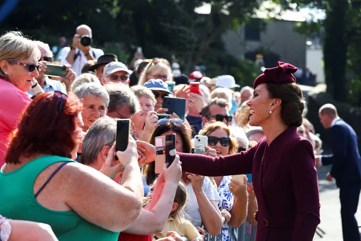 Ze verscheen met prins William in St Davids Cathedral voor een herdenkingsdienst voor koningin Elizabeth en sprak daarna even met mensen die stonden te wachten.
