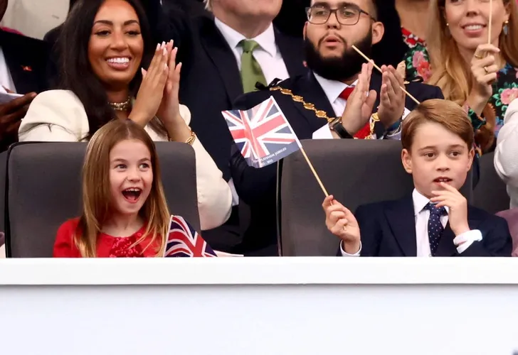 Het kan niet op met leuke royal foto's vandaag. Zagen we prinses Charlotte en prins George eerder al met hun ouders in Wales het 70-jarig regeringsjubileum van hun 'gan-gan' vieren, ze waren vanavond ook van de partij bij het grootste Platinum Party at the Palace concert.