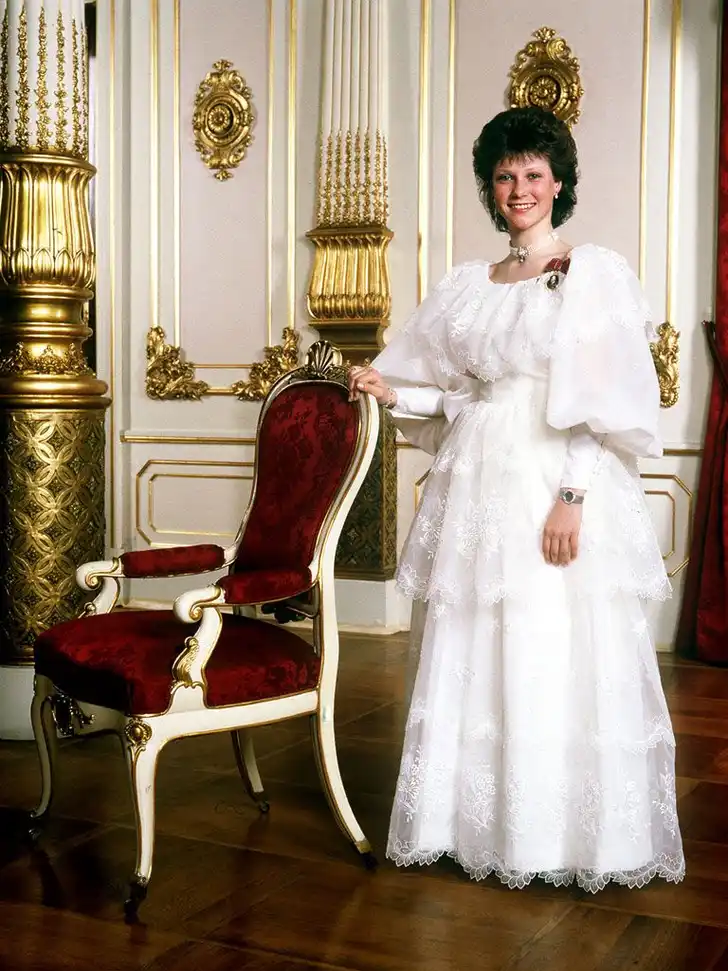 Just for fun: dit is Märtha Louise's belijdenismoment in de jaren tachtig: ze droeg toen voor het eerst de Koninklijke Familie Orde van koning Olav V.