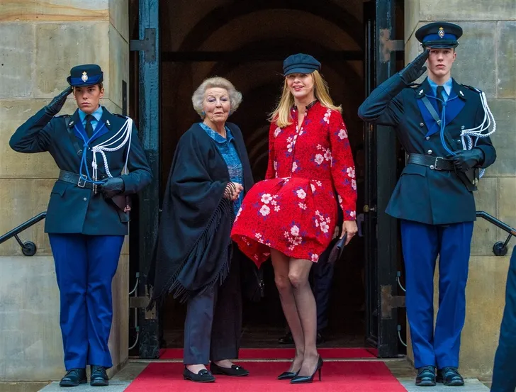 Prinses Beatrix en prinses Mabel waren in december bij de uitreiking van de Prins Claus Prijs 2018 in het Koninklijk Paleis op de Dam in Amsterdam. Love de pet!