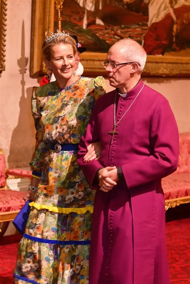 Londen, oktober 2018, Buckingham Palace! Mabel loopt hier, in een jurk die we nooit zullen begrijpen, richting staatsbanket tijdens het staatsbezoek van Willem-Alexander en Máxima aan het Verenigd Koninkrijk.