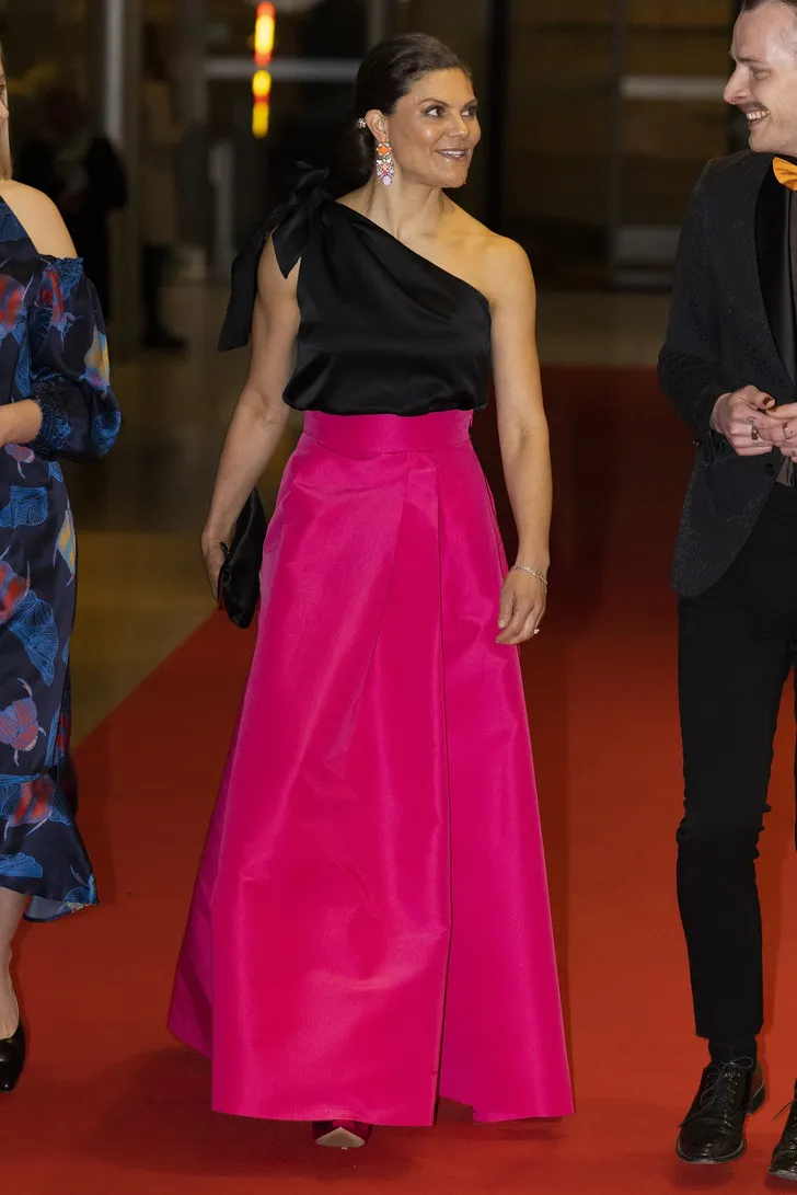 Een paar dagen geleden las je al over de black-pink trend die mateloos populair is onder royals. Prinses Victoria van Zweden haakte voor de 100ste verjaardag van de Swedish National Union of Students meteen in met een zwarte top op een hot pink rok.
