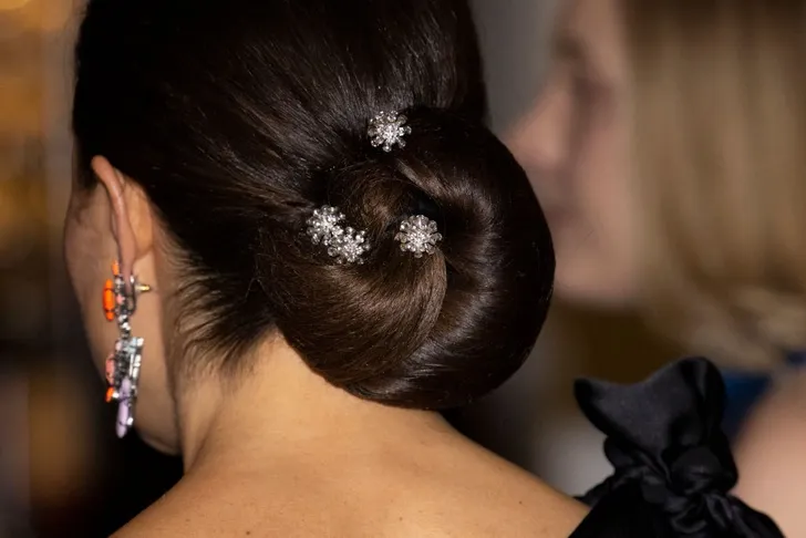 En als wij diamanten haarspelden hadden, staken we die óók in onze chignon.