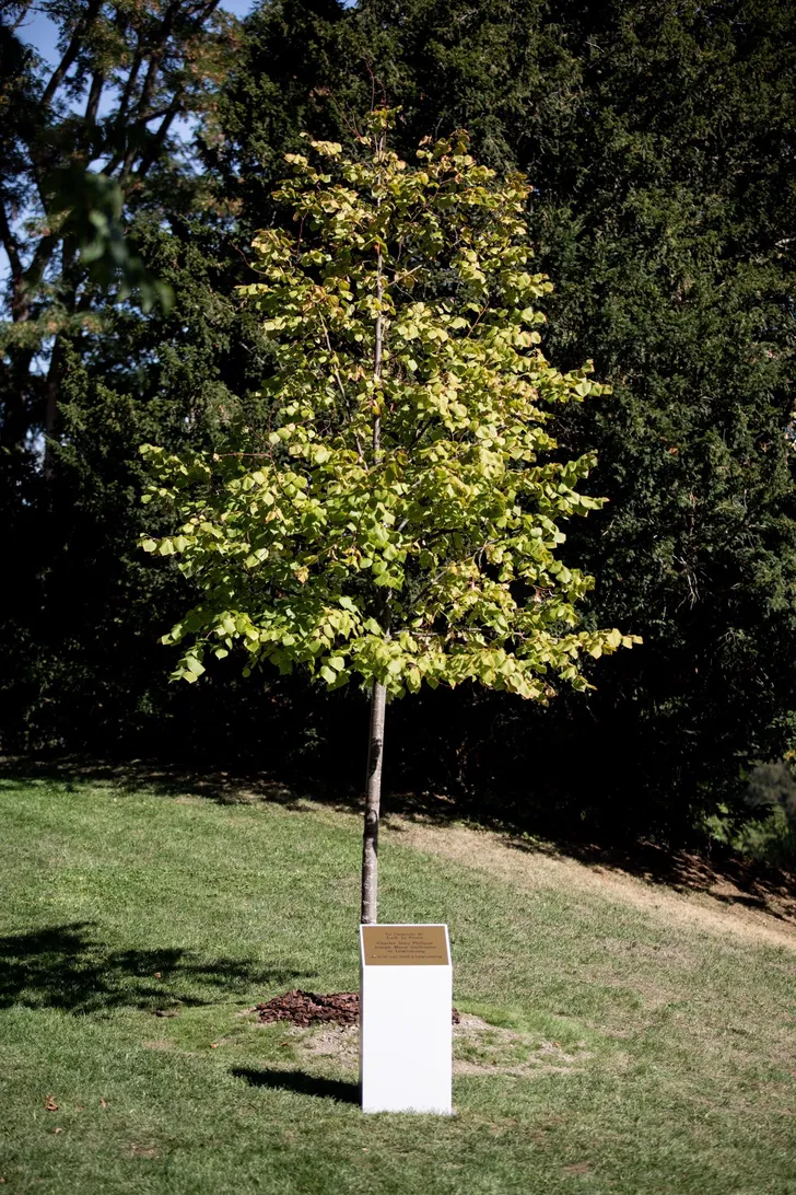 Je kunt een baby natuurlijk bij de nanny laten, maar Charles ging gezellig mee om een boom te (laten) planten ter ere van zijn geboorte.