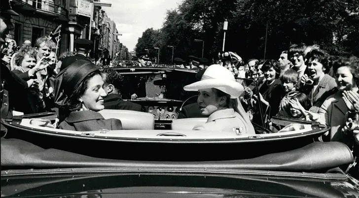 Susan Katharine Hussey, Barones Hussey van North Bradley (82) is als vijfde en jongste dochter van de 12de graaf Waldegrave niet van de straat. Hoewel ze twee kinderen heeft in de leeftijd van prins Andrew en prins Edward (haar man Marmaduke leeft niet meer), besteedt ze al sinds 1960 het grootste deel van haar tijd aan de Queen en is ze ook al die tijd al een vertrouweling van de Windsors. Hier zit ze in 1969 links naast prinses Anne tijdens een rit door Londen.