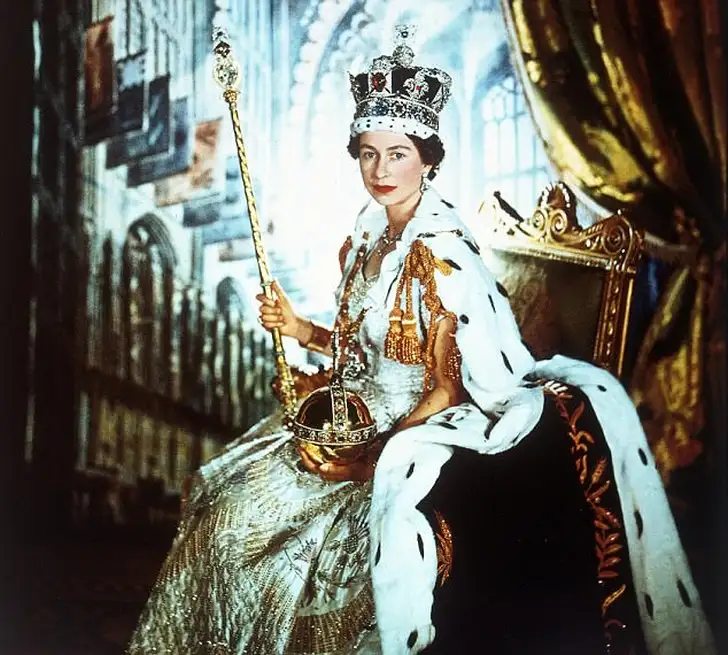 Over de zware kroon bijvoorbeeld, van bijna anderhalve kilo, die de toen 27-jarige Elizabeth in Westminster Abbey op kreeg. ‘Je kunt niet omlaag kijken om je speech te lezen, die moet je recht voor je houden. Zou je dat wel doen, dan zou je nek breken. En de kroon afvallen. Dus ja, er zitten wat nadelen aan kronen, maar verder zijn het best belangrijke dingen.’ Ook herinnert ze zich de prachtige jurk die ze droeg, behangen met parels, goud en zilver, en die haar daarom gewoon verzwaarde. ‘Ik herinner me dat ik op een gegeven moment over het tapijt liep en niet meer vooruit kwam.’ En dan nog de uren durende rit door Londen in de Gold State Coach. ‘Horrible. Die koets is niet bedoeld om te reizen. Dat ging stapvoets, de paarden konden natuurlijk niet sneller.’ De kroon, die ze overnam van haar vader koning George, was aanvankelijk groter – ‘een onhandelbaar ding’ –, maar de doorsnede bleef gelijk. ‘Gelukkig was de vorm van ons hoofd gelijk. Als je de kroon opzet, zit ie ook. Dan blijft ie gewoon goed zitten.’