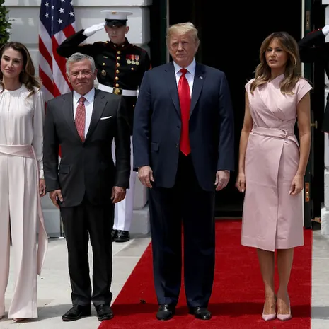 Koning Abdullah en koningin Rania van Jordanië waren maandag voor de tweede keer sinds de Trumps in het Witte Huis trokken op bezoek bij het presidentieel paar. Dus het kan maar zo dat de first lady en de queen de vorige keer telefoonnummers uitwisselden.