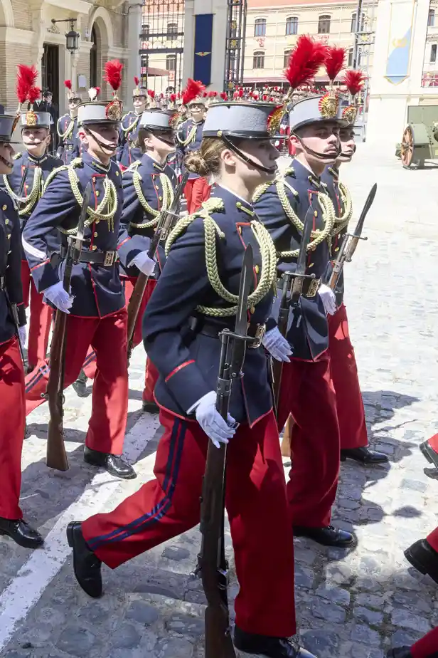 In Spanje geldt dat de zittende vorst óók opperbevelhebber is van het Spaanse leger. En daarom heurt ’t erbij dat je je drie jaar lang laat afbeulen tussen je mederekruten tijdens een intensieve militaire training. Inmiddels studeert prinses Leonor al even aan de Academia General Militar in Zaragoza, waar ze afgelopen augustus begon.