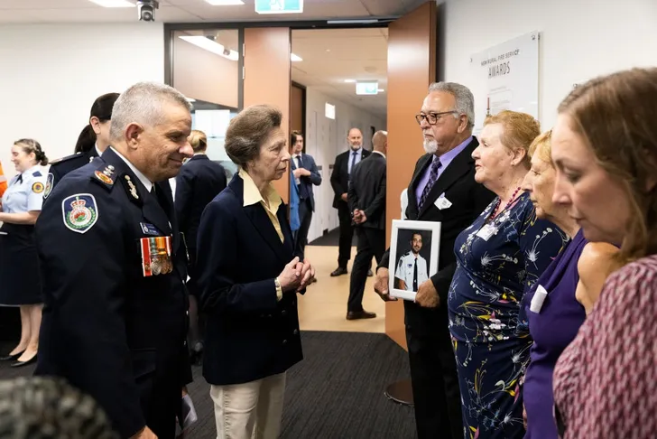 Her Royal Highness Princess Anne arrives at the @NSWRFS state headquarters, to meet with volunteers - including the families of Geoffrey Keaton and Andrew O'Dwyer, who were killed in the Black Summer fires @10NewsFirst @RoyalFamily pic.twitter.com/ZBPtEk5BEg