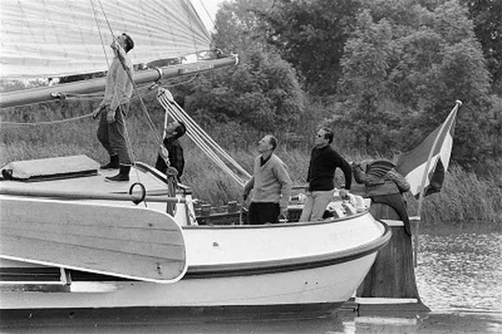 De Groene Draeck is geen wedstrijdschip natuurlijk, al heeft Prins Claus er wel eens mee gevaren in de 100 mijlsrace in 1968 op het IJsselmeer.