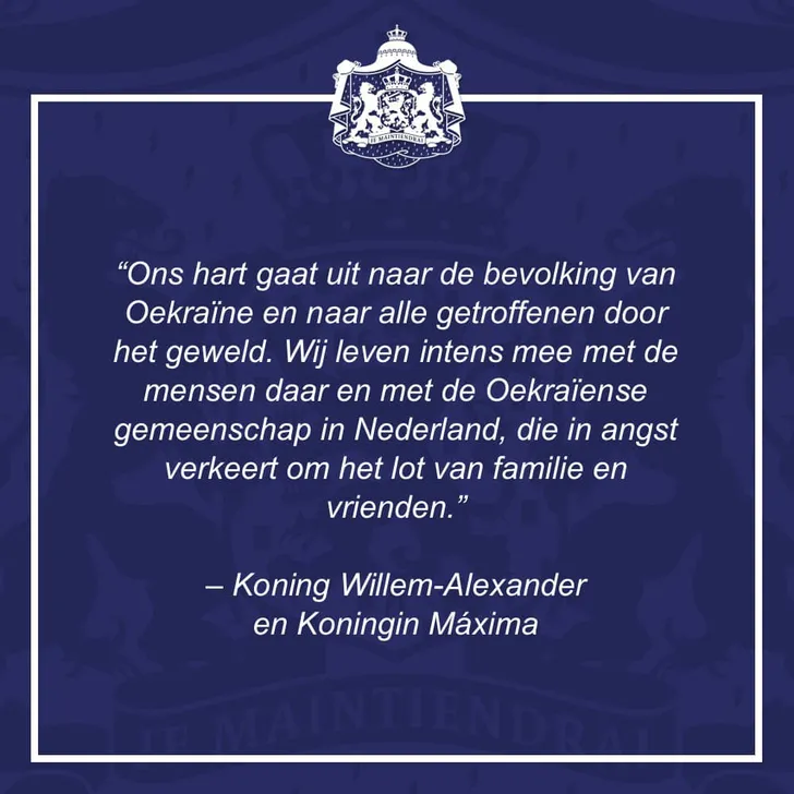 Het Nederlands koningspaar hobbelt er een beetje achteraan, al kwamen ze wel vrij snel met een online statement van medeleven voor de slachtoffers van de oorlog.