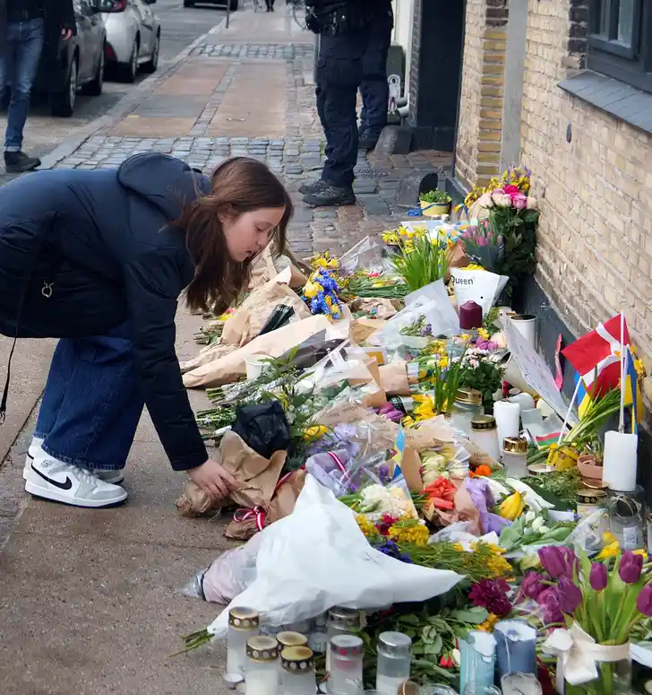...legden bloemen bij de ambassade van Oekraïne in Kopenhagen.