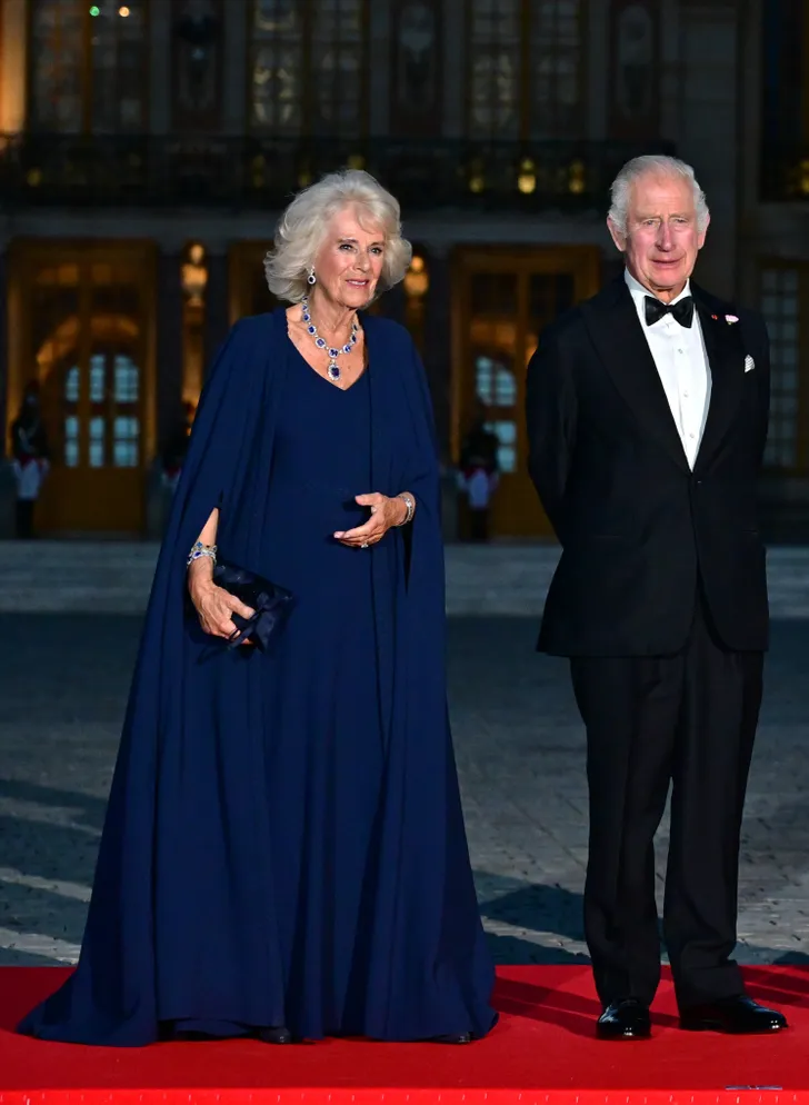 Koningin Camilla in Versailles,'absolutely stunning' een donkerblauwe Dior.