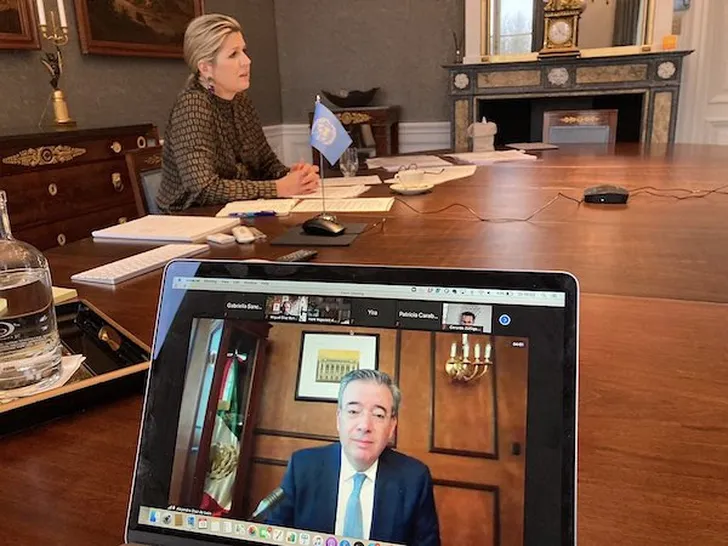 Het is modisch nog niet écht genieten in het nieuwe jaar, nu we koningin Máxima alleen vanachter een scherm zien. Maar voor een drukke dag vol internationale calls trok HM van de week tóch een nieuwe aanwinst uit de kast: een blouse van Natan die een pietsje bereikbaar is voor iedereen.