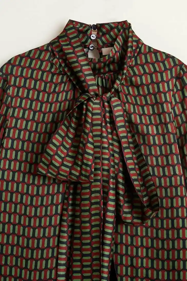 De gezellig beprinte top met geometrische print komt namelijk uit de ready to wear-collectie van Natan, en is daardoor wel nét iets betaalbaarder dan veel van de andere custom designs die Máxima draagt van het Belgische merk.