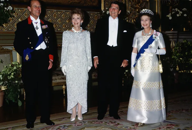 Twinning in zilver: First Lady Nancy Reagan en koningin Elizabeth in 1982.