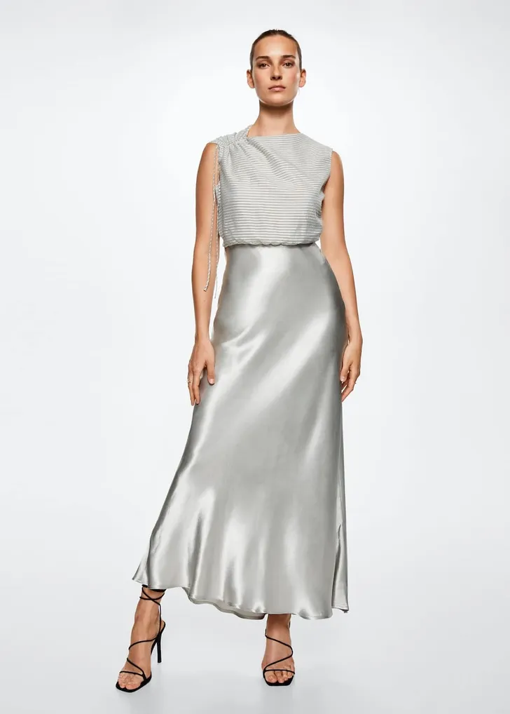 Satijnachtige jurk met gestreepte top, Mango € 60