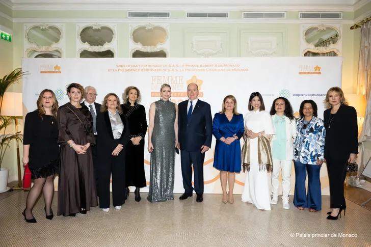 Prinses Charlene was niet aanwezig, maar dat is niet ongebruikelijk. Ze ziet vaak af van het Rose Ball om haar schoonzus daar de leading lady te laten zijn. Charlene neemt op haar beurt later in het jaar het Rode Kruis Bal voor haar rekening, een andere grote society fundraiser. Gisteren was ze nog met Albert bij de Monaco Women Forum Awards, in een grijze Akris - twee gala's achter elkaar is misschien ook wel een beetje véél.