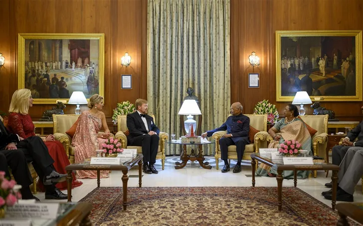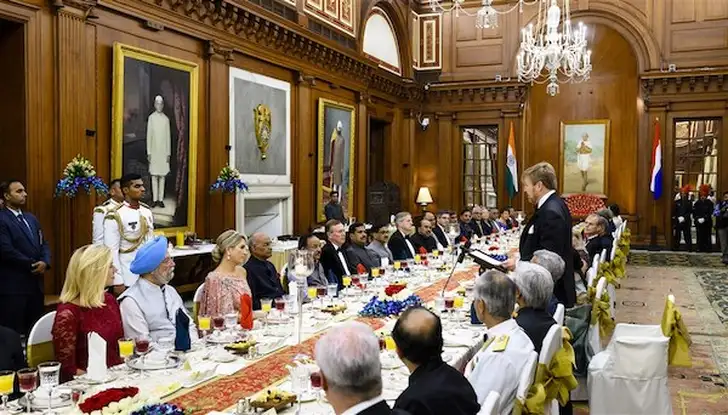 De eerste dag van het staatsbezoek aan India wordt afgesloten met een staatsbanket in het presidentieel paleis. Koning Willem-Alexander houdt een toespraak. Lees de volledige toespraak: https://t.co/U8YsKoleko #NLINDIA #staatsbezoek pic.twitter.com/7dFUpeDhOl