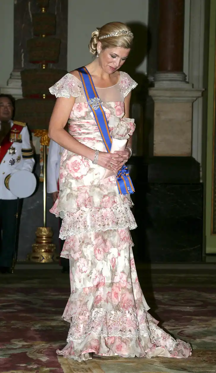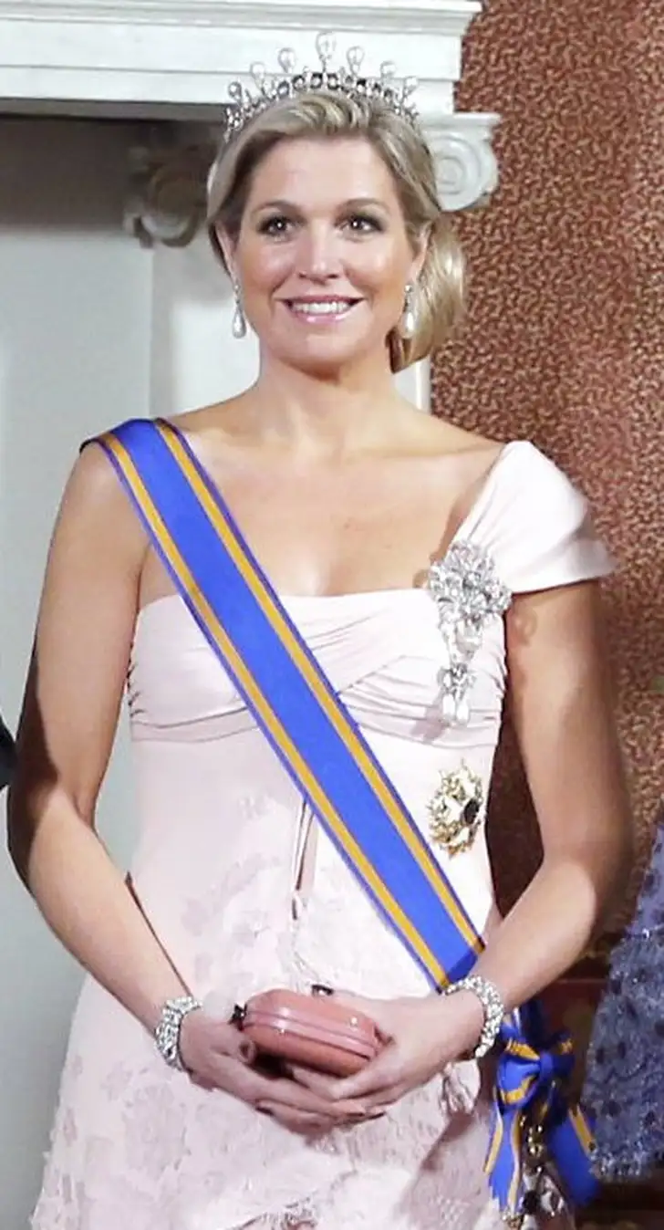 De broche die Máxima gisteravond droeg in Oostenrijk waren de Oranjes bijna kwijt geweest. En dat terwijl het een van de oudste stukken uit de collectie is.