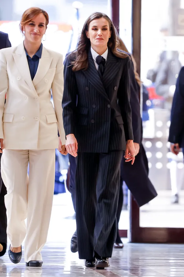 Letizia droeg een strak gestreept broekpak met loafers en bijpassende stropdas. Haar keuze om er een stropdas bij te dragen – een accessoire dat traditioneel aan zakenmannen wordt gekoppeld – bewijst dat mode geen grenzen kent, zelfs niet binnen de koninklijke familie.