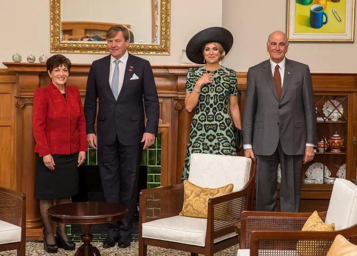 Het staatsbezoek aan Nieuw-Zeeland is maandag van start gegaan! Na het staatsbezoek aan Australië vervolgen koning Willem-Alexander en koningin Máxima hun verblijf 'down under' met een vol programma in Nieuw-Zeeland. Koningin Máxima trapt het bezoek af in een jurk met een dierlijke print die we al kennen van haar bezoek aan Argentinië. Bij het staatsbanket kiest de koningin opnieuw voor een bijzondere rode japon met een waardevolle tiara. Deze jurk van Claes Iversen heeft Maxima wel al eerder gedragen. Dat maakt de jurk niet minder spectaculair!