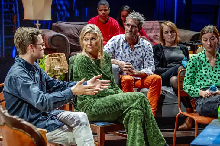 Koningin Máxima woont de theatervoorstelling bij en sloot vervolgens aan bij twee gesprekstafels met studenten, leden van het Outbreak Management Team en beleidsmakers.
