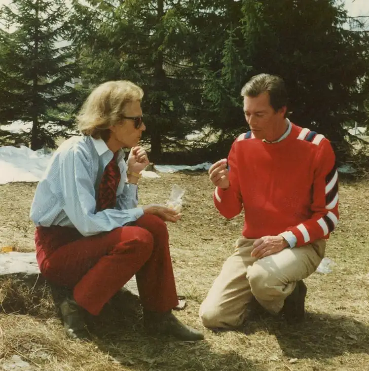 ...en dit is een van de weinige casual kiekjes van Henri's moeder Joséphine Charlotte, geboren als prinses van België en later groothertogin van Luxemburg. JC was zéér voornaam, maar leek geen bezwaar te hebben tegen paaseitjes eten uit een plastic zakje.