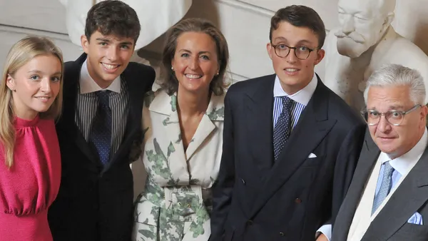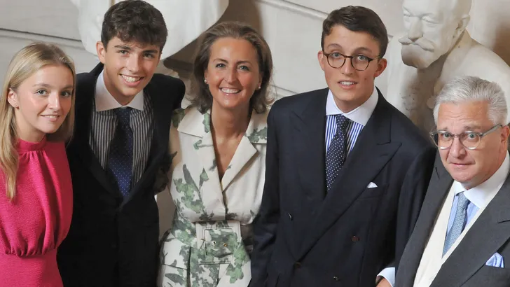 De Belgische Prins Laurent en zijn gezin beginnen het nieuwe jaar met een gelukswens voor hun landgenoten. De broer van koning Filip poseerde (voorafgaand aan de bruiloft van prinses Maria-Laura, maar soit) voor een familiefoto met prinses Claire en hun kinderen Louise (18) en Aymeric en Nicolas (17).