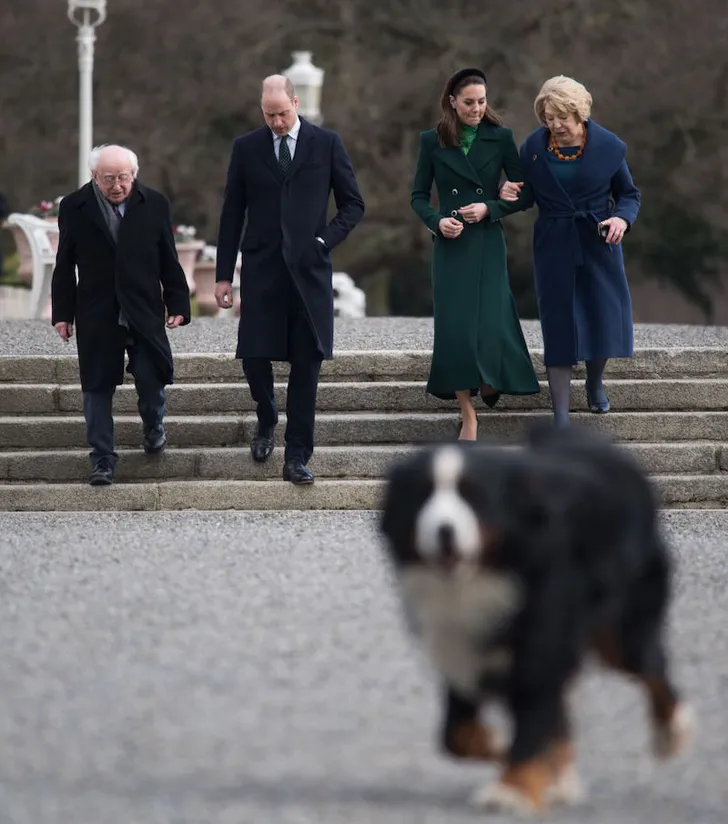 De start vanmiddag in Dublin deed natuurlijk erg denken aan die van Harry en Meghan vlak na hun huwelijk. Ook zij werden gekiekt met de honden (voor de liefhebbers: Brod and Sioda) en de president en zijn vrouw natuurlijk.