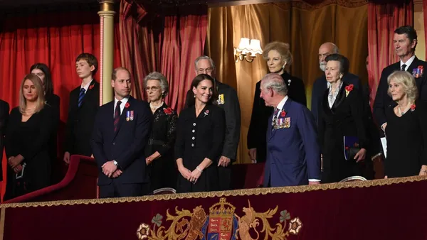 Ondanks de afwezigheid van de Queen wisten de Windsors toch nog de royal loge leuk te vullen voor het Festival of Remembrance in de Royal Albert Hall. Dit semi-militaire event heeft altijd plaats op de vooravond van Remembrance Day, de Britse Dodenherdenking.