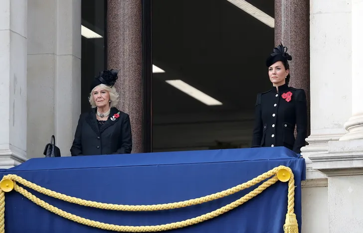 Ook Camilla, de hertogin van Cornwall, en Catherine, de hertogin van Cambridge hielden gepaste afstand.