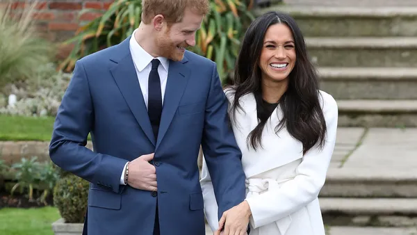 Meghan kwam voor de gelegenheid alvast in het wit (noem het een voorproefje), en leek haar zenuwen goed de baas. Harry meldde dat het stel 'thrilled' is dat ze nu eindelijk als verloofden door het leven kunnen. En Meghan beaamde alvast even dat het aanzoek héél romantisch was, al bewaren ze de details voor een iets later moment. En natuurlijk liet ze ook even vol trots haar prachtige ring zien.
