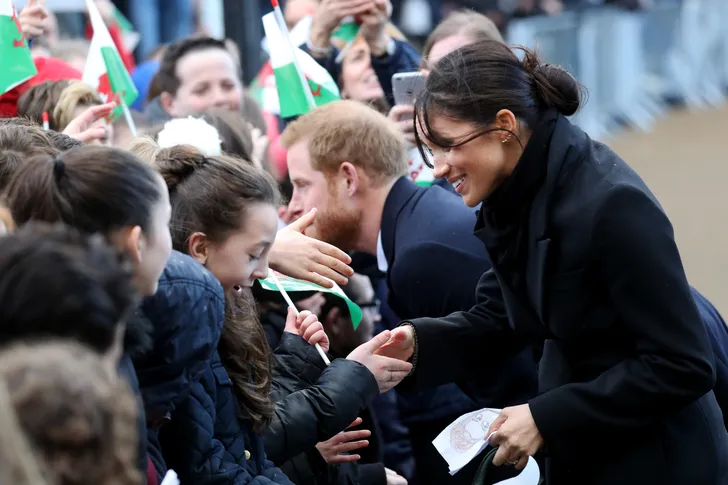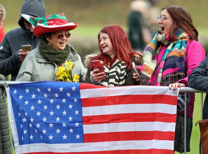 Bij het kasteel werden ze verwelkomd door een enthousiaste menigte, want iedereen wil natuurlijk graag een blik opvangen van de royal-in-spe. Zo te zien had ze fans van alle leeftijden, en vinden ze haar Amerikaanse komaf ook hartstikke lollig.