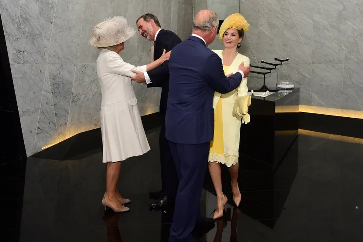 Zo waren met name de twee ontmoetingen tussen Letizia en Felipe en Charles en Camilla volgens aanwezigen buitengewoon ongemakkelijk. Op de foto’s is dat ook duidelijk terug te zien: onhandige handjes, Charles die véél te dicht bij de mooie Spaanse gaat staan…