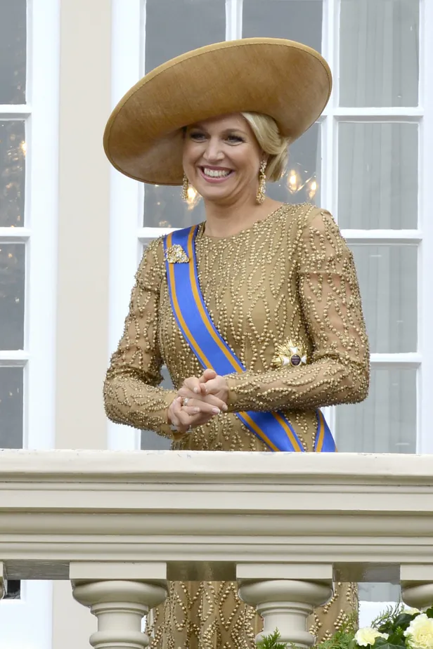 De creatie die absoluut niet in dit rijtje mag ontbreken, is de prachtige japon die Máxima droeg tijdens Prinsjesdag in 2013. De gouden tinten stonden haar fenomenaal, samen met de grote hoed en sieraden. Na deze dag bleef de japon maar liefst negen jaar in de kast, tot het staatsbezoek aan Italië. De keuze voor deze extravagante jurk voor een bezoek aan Italië, snappen we wel.