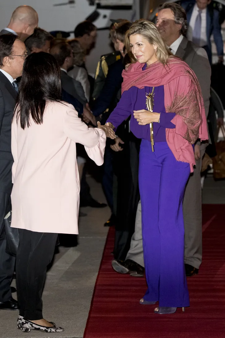 Bij aankomst in Portugal, waar ons koningspaar de komende dagen op staatsbezoek is, droeg Máxima een wel heel opvallende ketting.