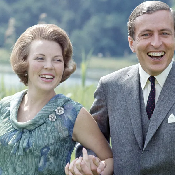 Mabel in 2005 en Beatrix op haar verlovingsfoto met prins Claus, in 1965.