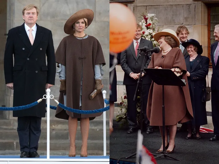 Máxima eind 2016 en Beatrix op Koninginnedag 2000. Máxima liet de mantel wel wat vermaken.