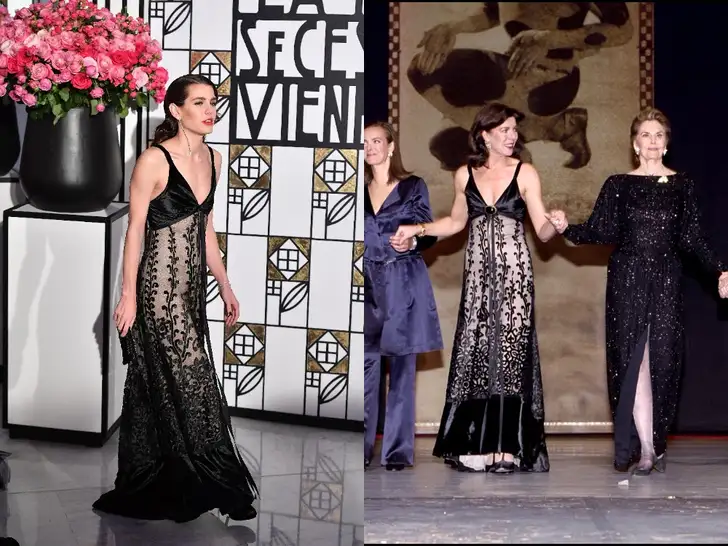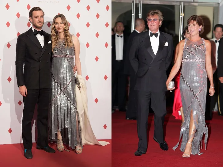 Charlotte Casiraghi in 2017 en haar moeder Caroline in 2000.