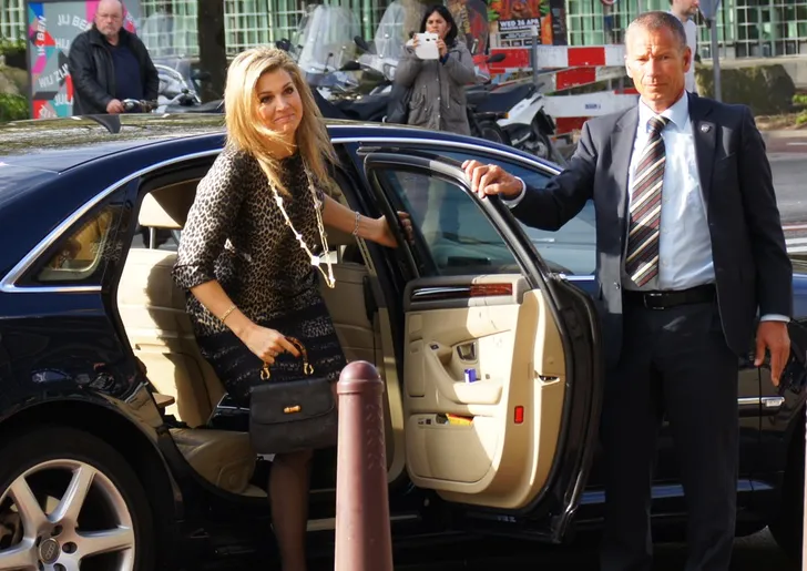 Koningin Máxima is op alles voorbereid en werkt nog snel even een suikervrij pepermuntje weg – je ziet de Smint hier in het zijvak van het portier – voor ze uitstapt, om minty-fresh aan haar bezoeken te beginnen #cool.