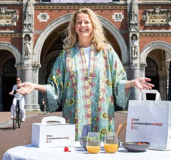 Mabel: "Een dubbele pandemie van corona en hiv zet de wereld op z’n kop. De behandeling van vele mensen met hiv kan daardoor niet doorgaan. Deel je liefde en steun de strijd tegen aids samen met het Amsterdam Ontbijt. Bestel het nu of geef het cadeau aan iemand die je dierbaar is."