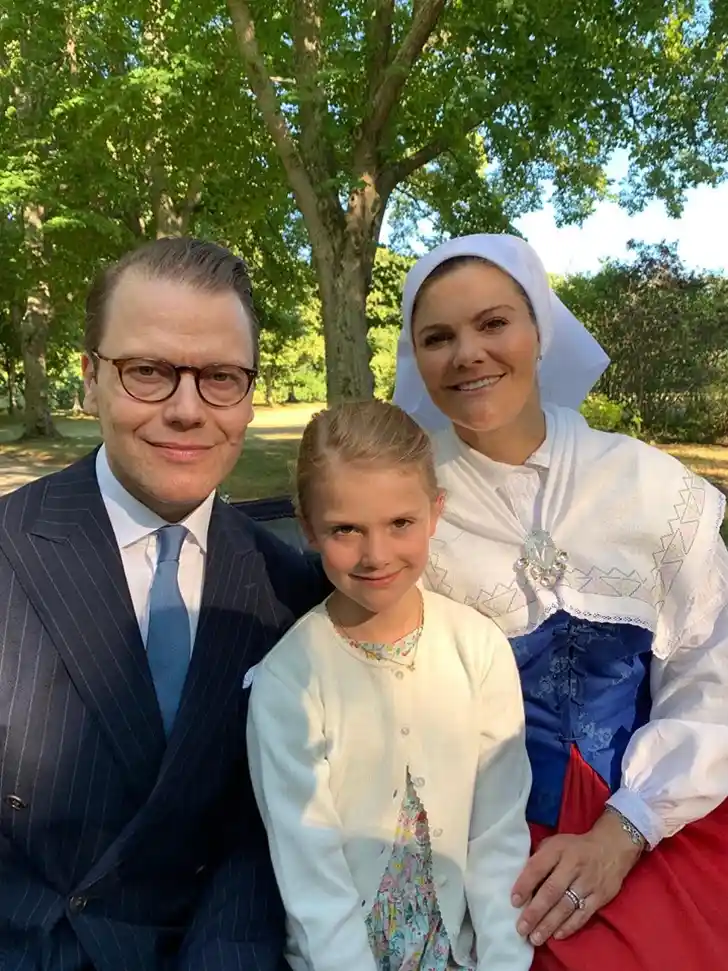 Dit is nog niet de officiële gezinsfoto die de Zweedse royals meestal vrijgeven voor ze naar hun villa in Saint-Maxime verkassen, maar hij is te leuk om niet even te laten zien: prins Daniel en kroonprinses Victoria met hun dochter, prinses Estelle. Het enthousiasme waarmee Vic plaatselijke klederdrachten omarmt voor volk en vaderland is bewonderenswaardig.