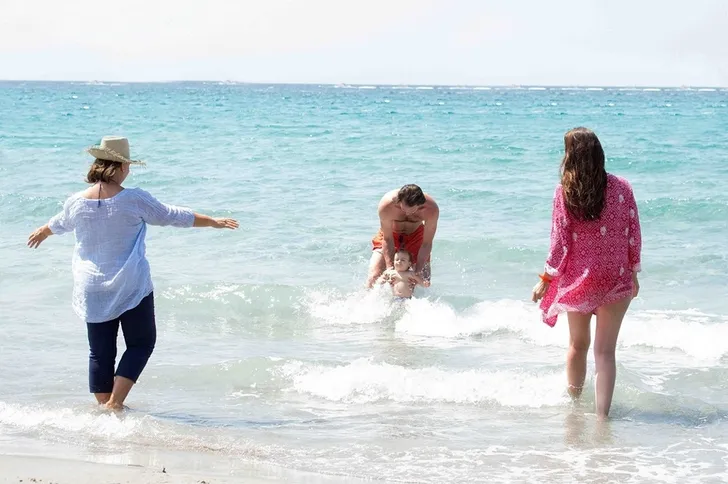 ...en door de zee: hier stevent groothertogin Maria-Teresa in 2016 af op zoon Felix en kleindochter Amalia, rechts prinses Claire.