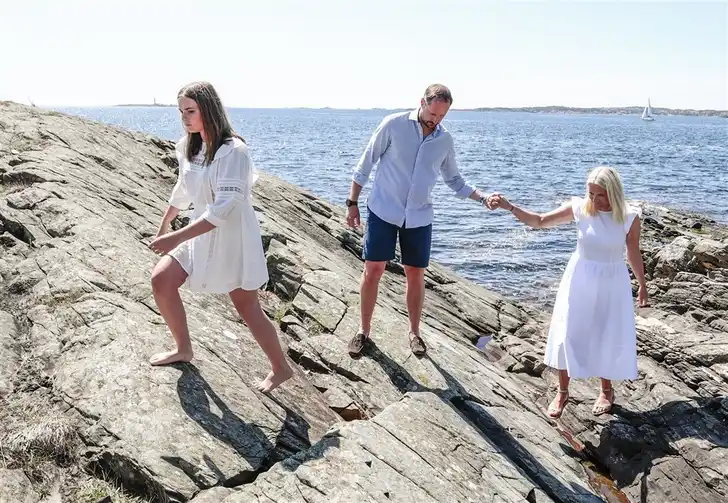 …dan klimmen ze toch wel op wat Noorse rotsen met uitzicht, zoals dit jaar. Prinses Ingrid Alexandra koos voor een Little White Dress, kroonprinses Mette-Marit voor een zomerjurk met iets meer dekking en kroonprins Haakon blijft altijd een heer.